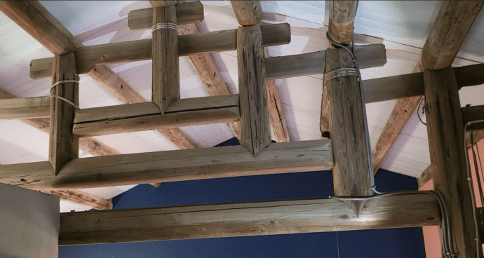 ▲屋頂的基座尚存,是現今難見的卡榫工法。(圖/張鳳月提供)
