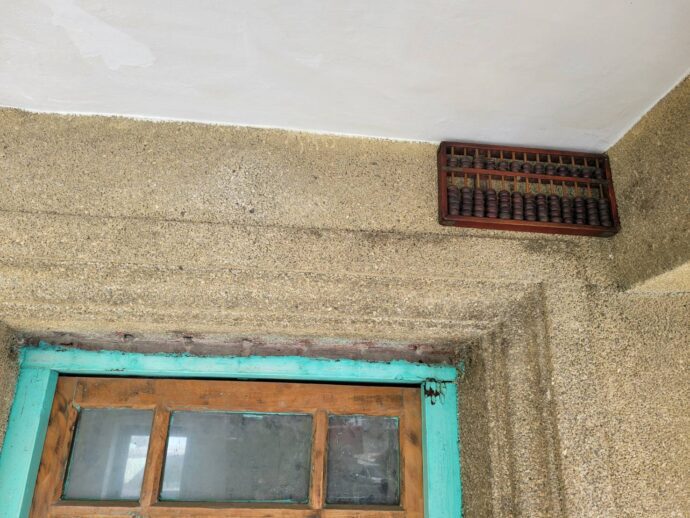 ▲劉德波洋樓一樓牆上掛了一個算盤,勸人凡事不須要太計較。(圖/秦毅君提供) 劉德波洋樓一樓牆上掛了一個算盤,非常特別,經過楊老師的解說,原來是勸人凡事不須要太計較,這是楊老師的處世智慧,令人值得學習。閒暇時,楊老師也會和老人家交流如何以蚵殼製作藝術品。而日前劉德波的媳婦過百歲生日,楊老師藉港仔門工作室之由,使劉家後人重聚於此,回憶早時過往的點點滴滴,喚回溫馨地兒時迴想,還約定了下一次的見面。