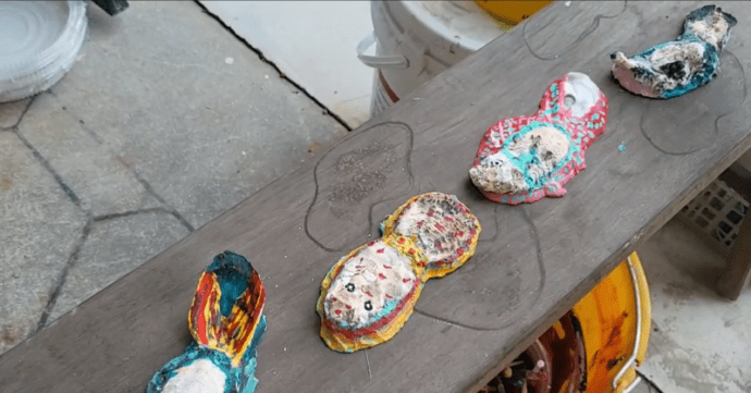 ▲楊老師和老人家交流的蚵殼製作藝術品。(圖/張鳳月提供)