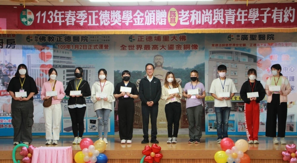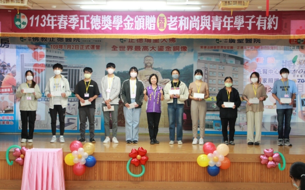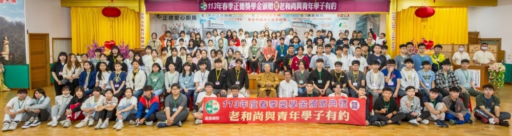 「113年春季清寒獎學金頒贈典禮暨老和尚與青年學子有約」活動於5月4日同步於正德高雄總院等11家全省各分院進行,立法委員許智傑及李昆澤、高雄市政府市政顧問蘇致榮、鳥松區區長盧雪紅等貴賓親臨高雄總院共襄盛會,此次活動全省共計544名學子獲贈獎學金,發放金額達4佰萬元。