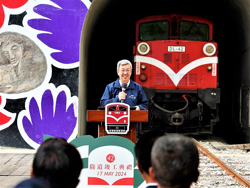 行政院長陳建仁表示,工程人員離鄉背景,每天在濕冷的偏遠山區及暗無天日的隧道內日夜輪班工作,有時候好幾個月沒機會見到家人,感謝所有參與這件工程的施工人員共同打拚。並肯定林鐵處以創新思維,兼具環保與文化保存,並積極處理施工期間遭遇的諸多突發事件,以高環保高品質高效率完成這件42號隧道工程,讓國人期盼已久的阿里山林業鐵路全線通車,終於迎向曙光,並手持無線電話機宣布「42號隧道,正式啟用」;司機員接到指令回復「收到」後,隧道內編號DL-42機關車立即亮燈,鳴笛,獲得來賓的熱烈掌聲。