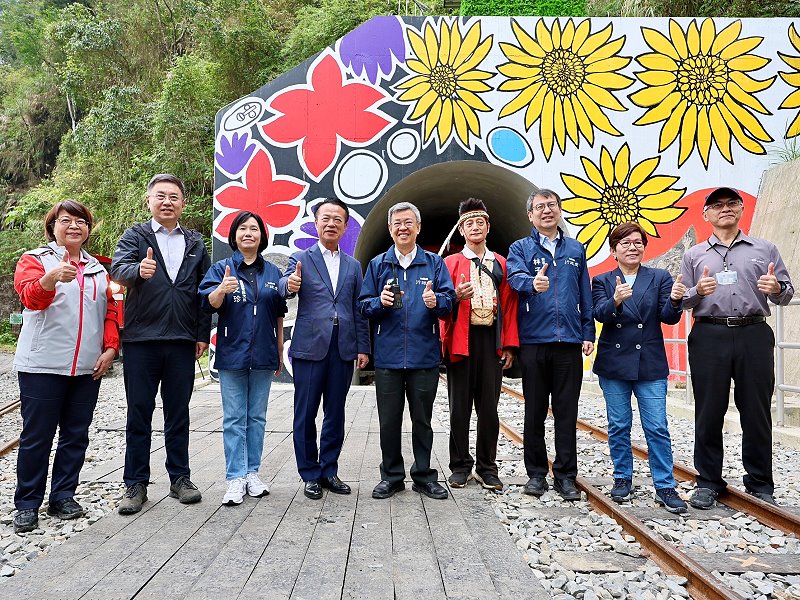 〔今傳媒/記者呂明鴻報導〕農業部林業及自然保育署阿里山林業鐵路及文化資產管理處於5/17日辦理42號隧道竣工典禮;阿里山林業鐵路於104年將莫拉克颱風造成421處災害復建完成,當年9月又因杜鵑颱風強力侵襲,十字路站至屏遮那站間的42號隧道發生2處共達55公尺的大型崩塌而停駛,經綜合評估決定新建1,106公尺的隧道,110年1月8日動工,歷經3年終於完成全線通車最後一哩路。