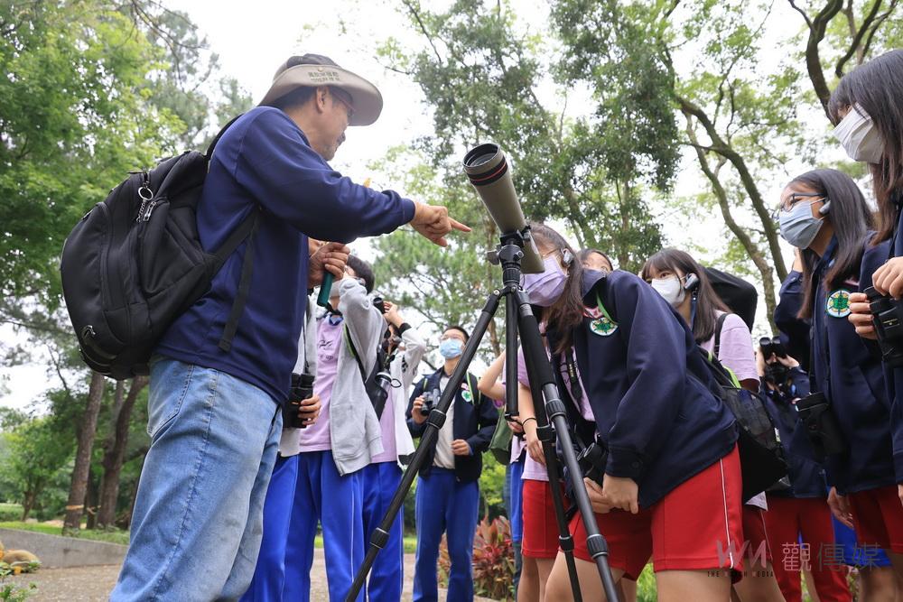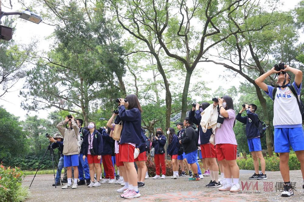 ▲同學們認真學習使用望遠鏡觀察各種鳥類。