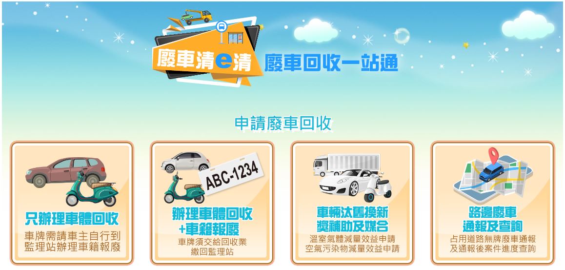 彰化監理站站長黃建興表示,民眾若同時辦理車體回收與車籍報廢,透過「廢車回收一站通」」點選/辦理車體回收+車籍報廢/輸入基本資料後,可預約時間、地點及選擇就近環保回收業者,一次完成車體回收與車籍報廢;若僅辦理車籍繳銷或報廢,則可透過「監理服務網」點選汽機車/行照及牌照/車牌報廢及繳銷申請,10天內寄回號牌即可完成報廢手續。
