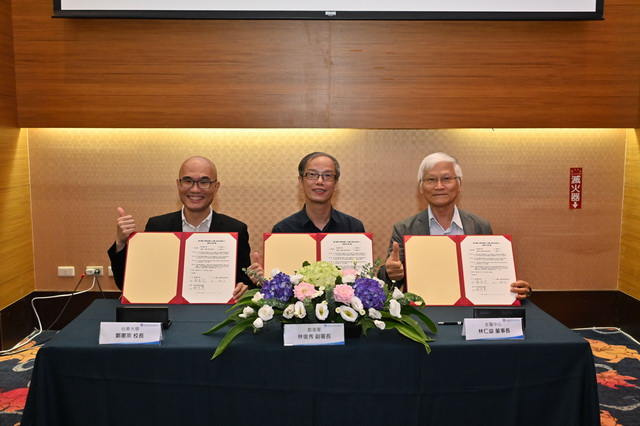 圖說1:MOU簽署儀式(由左至右為:台東大學鄭憲宗校長、數產署林俊秀副署長、金屬中心林仁益董事長)。