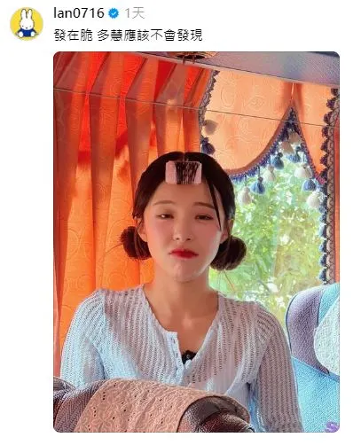 籃籃發出李多慧的崩壞照。(圖/翻攝籃籃Threads)籃籃首先發出李多慧在遊覽車上綁著兩個小包包頭,額頭上頂著髮捲,眼神渙散的照片,籃籃逗趣寫下:「發在脆(Threads)多慧應該不會發現。」不過隔沒多久籃籃又再上傳一張李多慧轉身怒瞪著鏡頭的照片,手上拿著手機看的就是她剛剛發出的李多慧照片,表示:「發在脆,多慧發現了。」一來一往的互動顯示兩人的好交情。