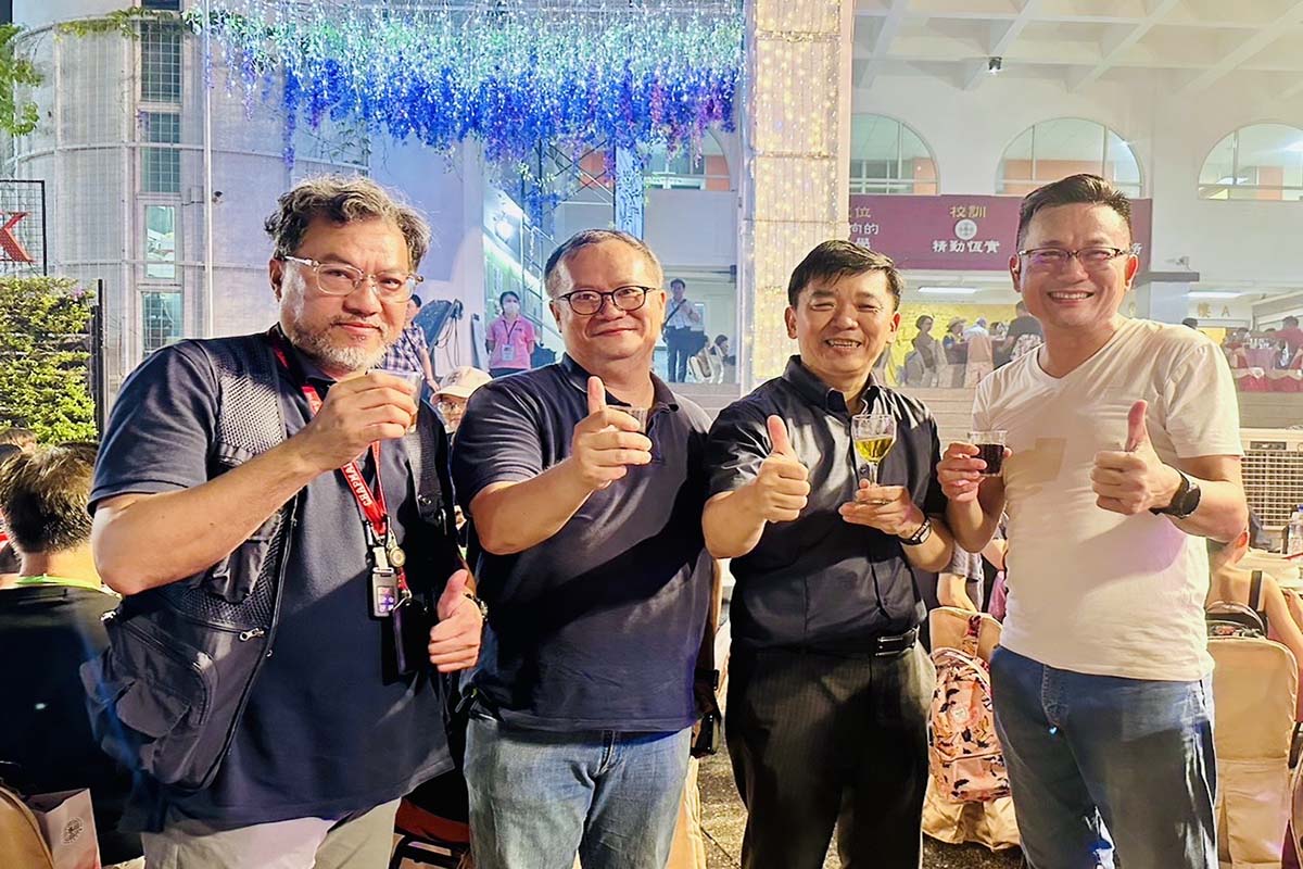 ▲陳西坤(右)、郭昭宏(右二)等相見歡。(圖/陳西坤提供)劉校長致詞時感謝校友熱情參與,用行動表達對母校的支持。她表示,將生平中最成熟、最精華的八年歲月投注在空大校務的開拓與經營,即將卸任之際,心中無憾卻十分不捨!衷心感謝各界對高雄空大的信任與支持,並感謝過去八年貢獻過空大的每一位。最後一次主持校友回娘家辦桌活動,希望沒有辜負大家的厚望;期待大家繼續秉持創校精神,不忘初心、同心協力、昂首前行,讓高雄空大永續成長,成為終身學習領導品牌。