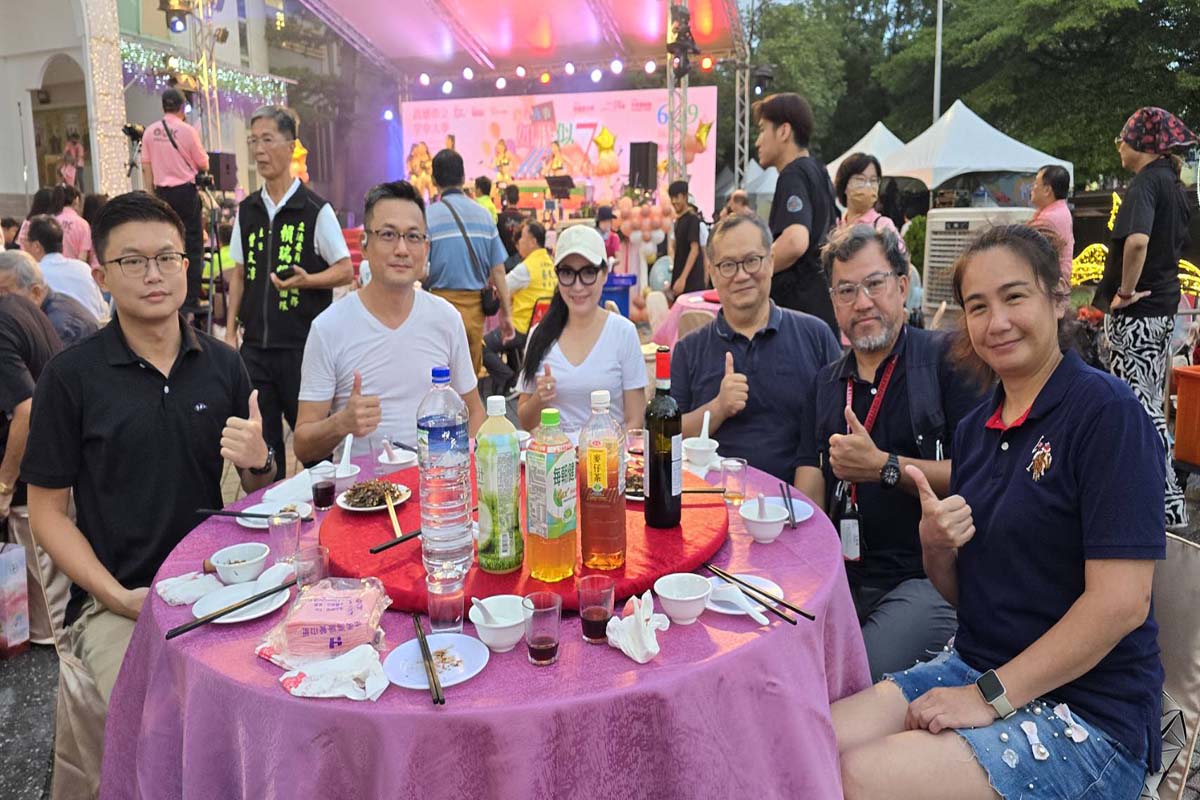 晚宴上劉校長邀請與會貴賓執行「家有喜事 如膠似7th」慶祝儀式,為活動揭開序幕。今年最吸晴的節目是校長與教授們的「Queencard」熱舞表演,不僅增添票房吸引力,創下歷屆辦桌席次最多紀錄外,更在傳遞終身學習的精神,師長們以身作則,用自己的行動激勵校友與學員不斷挑戰自我,舞動人生新貌。