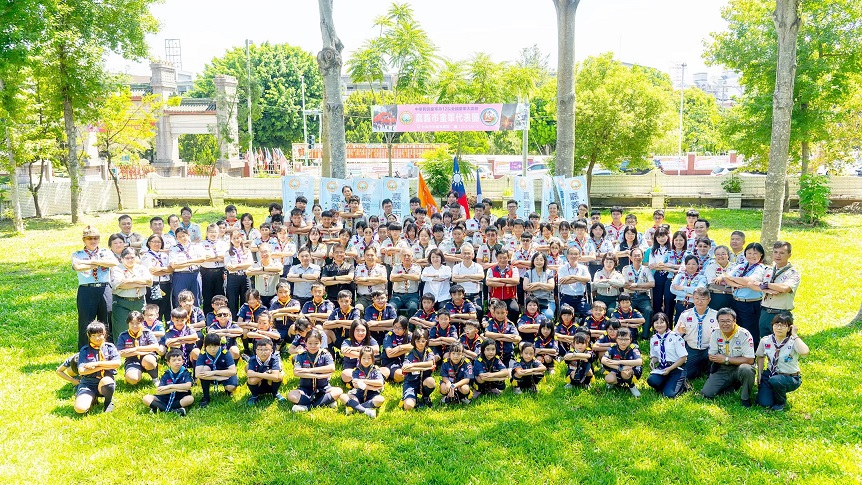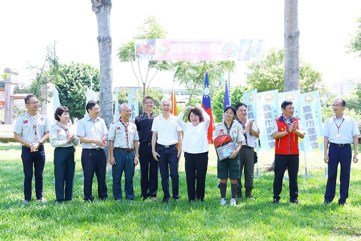 圖說:為了培養孩子於活動中的默契及團隊精神,於今(6)日在蘭潭露營區辦理全國第12次童軍大露營行前訓練,參加的童軍及各童軍團團長共計180餘人,黃敏惠市長特別出席勉勵童軍夥伴從「做中學」,並於生活體驗中去體現童軍諾言精神。(記者吳瑞興翻攝)