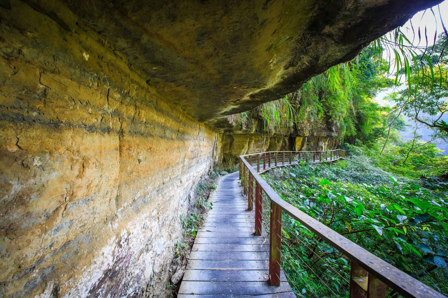 竹坑溪步道位於梅山鄉瑞峰村,去年重新開放入園,優美的森林步道及多座橋梁跨越峽谷、峭壁與瀑布而聞名,其中龍宮瀑布與雷音瀑布屬懸谷形瀑布,雨後瀑布的傾瀉景象更令遊客驚艷,步道設有木棧道,讓遊客穿越岩壁與瀑布之間,享受豐富的負離子氛圍;瑞峰村還有1314觀景台、瑞峰珍愛步道,天氣晴朗時可360度一覽連綿起伏的茶海美景,陰天時則能欣賞雲霧繚繞的朦朧美。
