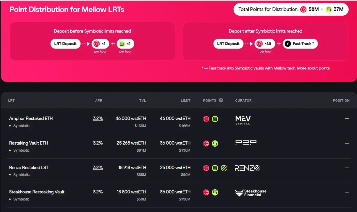 6 月 4 日,Mellow 宣布與 Symbiotic 合作,作為其生態系統中的一個模組化 LRT 流動性再質押項目推出。