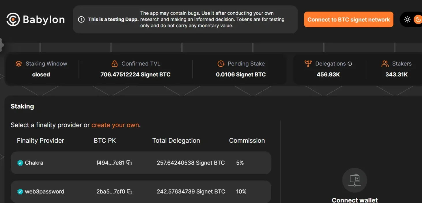 目前,使用者可以透過 Babylon Testnet4 測試體驗質押 BTC 的流程。