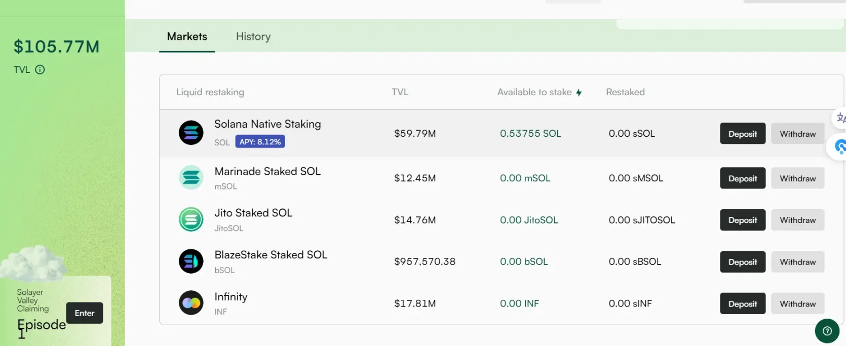 目前,Solayer 支援用戶存入原生 SOL 、 mSOL 、 JitoSOL 等資產,7 月 15 日,Solayer 平台上的 TVL 超過 1.05 億美元,其中 SOL 佔約 60% 。