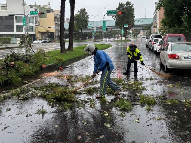 經陳、蘇2員及熱心民眾合作,將沉重樹幹移到路旁並清除路面雜物,大約2小時後,清除人員人均汗如雨下,將倒塌樹木障礙物順利排除,道路也恢復順暢正常通行,避免民眾因颱風風勢強勁路況視線不佳及樹倒障礙發生交通事故,現場無人車發生危害,附近居民及用路人非常感謝警方及熱心民眾的辛勞及付出。