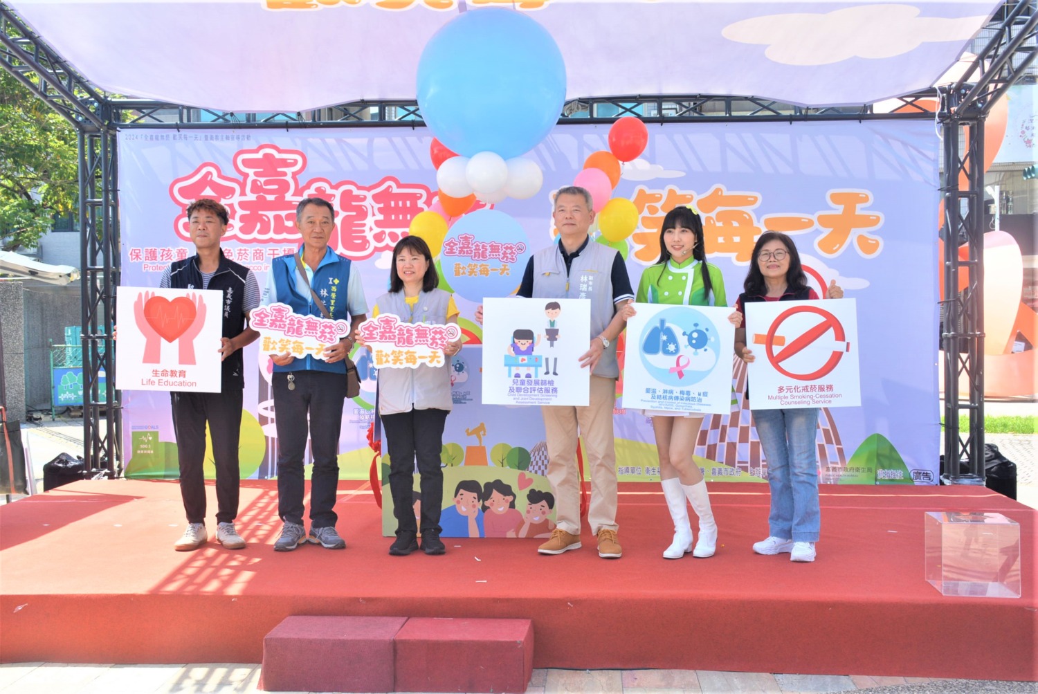 嘉義市政府衛生局辦理「全嘉龍無菸」活動,以呼應2024年世界無菸日主題「保護孩童,避免菸商干擾,同時活動結合4大主軸:「菸害防制」、「生命教育(預立醫療決定、安寧緩和療護、器官捐贈意願及病人自主權利法)」、「愛滋、淋病、梅毒、M痘(Mpox)及結核病傳染病防治」、「兒童發展篩檢及聯合評估服務」,活動中KIWI姐姐及卡通明星「YAMY」與大家一起同樂一起拒菸,還有氣球秀、默劇及劇團的精采演出;會場內趣味遊戲結合輕鬆有趣互動式闖關活動,讓大小朋友了解健康識能的重要性,另外同步進行無菸家庭DIY活動,帶孩子們化身成為小小創作家,製作出專屬自己的無菸家庭相框。