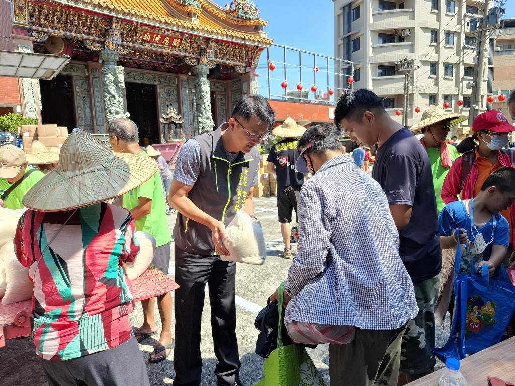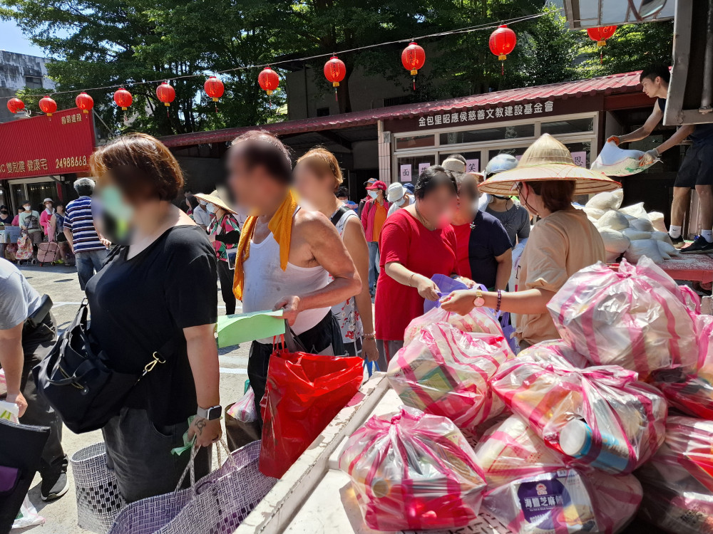 (大成報記者張玉玲/新北報導)中元節將屆,新生活社會福利發展促進會為考量弱勢家庭也有拜拜的需求,因此提前將平日各方所捐贈的物資整理轉贈給案家,每份包含沙拉油、麵條、餅乾、冬粉、八寶粥、罐頭、麥片、佛跳牆、雞湯、冷凍Q麵等近20樣食品,在金山區昭應侯廟前廣場發放723戶,金山區長劉昌松也到場鼓勵,並和新生活促進會志工一起致贈。