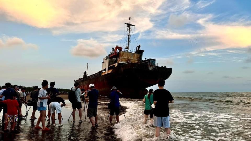 停泊台南外海,不堪被凱米颱風帶來的大浪侵襲,擱淺在黃金海岸蘇菲亞號貨輪,意外成為遊客網路打卡熱門景點,台南市議員李啟維建議政府應慎重思考,如果能把它保留下來,對台南觀光發展將有莫大幫助!