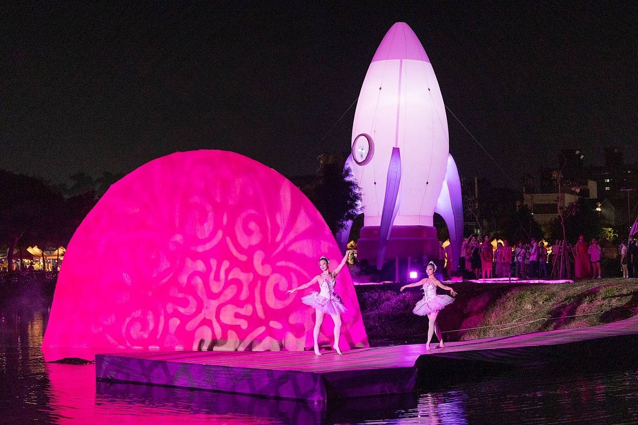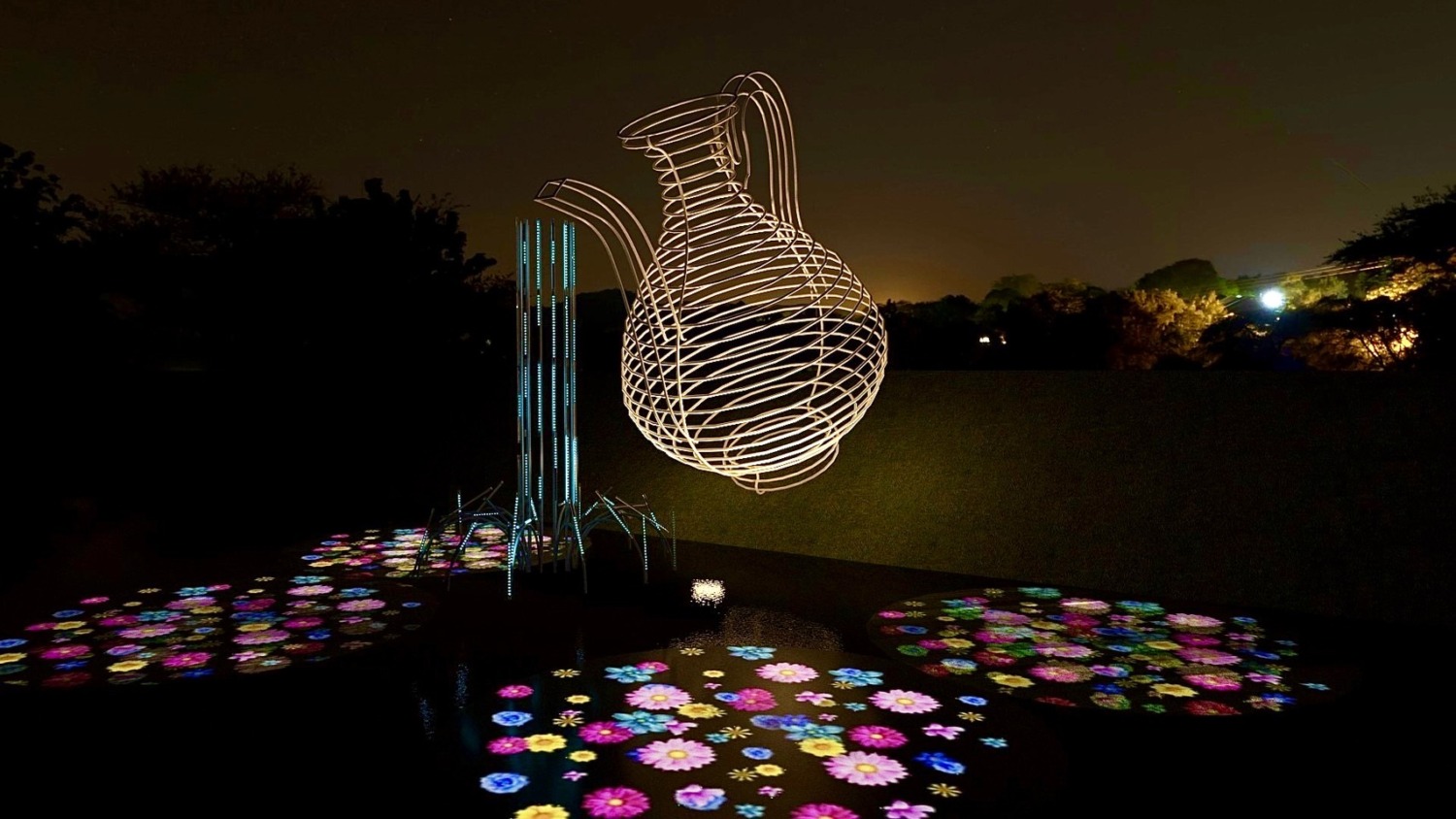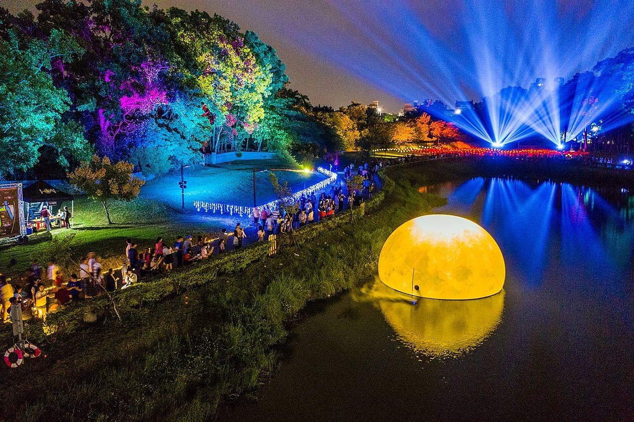 張婉芬處長指出,這次活動以大地為畫布、用光影藝術將北香湖公園妝點為城市戶外藝術館,運用光環境色光圍繞北香湖詮釋《桃花源記》的幻境,並設有8處光影藝術展區,其中直徑達7公尺的巨型竹編月亮「逐花月影」,結合傳統竹編藝術及人造花與現代光影科技,是全台絕無僅有的「湖上竹月」,傳達在快節奏的現代生活中,也要珍視並傳承歷久彌新的文化藝術。另使用3萬流明投影設備打造長寬30×15公尺巨型投影,搭配活動專屬3分鐘動畫的樹上光影劇場「夢月流光」、色彩絢麗的巨型花形氣模雕塑,如同跳脫現實進入夢想的「烏托邦」、以《李白•月下獨酌》為靈感,透過茶壺倒酒的意境,水面映出美麗花朵的「壺光對影」等必訪展區,將帶領遊客感受桃花源般如詩如畫的美好。