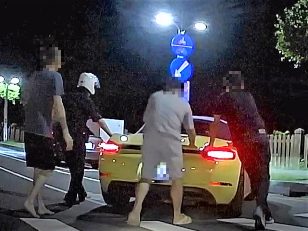 〔今傳媒/記者呂昭德報導〕嘉義市政府警察局第二分局北門派出所警員黃世賢日前擔服勤區查察勤務,行經忠孝路與林森西路口時,發現有1臺跑車佇立於車道正中央,察覺有異立即主動上前查看,而當員警方上前關心時,只見1名不知所措男子站在車輛旁,並著急地說著「我的車輛沒電了」;警方見男子著急,便先行安撫其情緒,因擔心男子的人身安全,警方、男子及熱心民眾同心協力先行將車輛推至路旁。