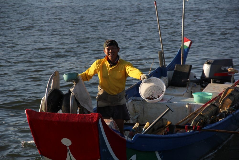 簡明雄表示,文蛤,又稱蛤蜊或蛤蠣,是簾蛤目簾蛤科文蛤屬的一種雙殼綱軟體動物,是市面上最常看到的貝類,多以養殖為主,現今淡水河口仍有漁民們遵循傳統的漁法捕撈文蛤,只需使用簡單的漁具「蛤耙」,以慢速航行逆拖蛤耙將蛤耙入竹簍當中就可滿載而歸。