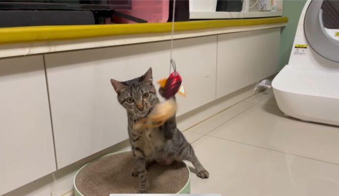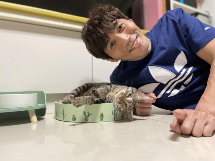 「憨吉」也得到了新名字「Am」,為了幫牠打造舒適生活環境,新手飼主林先生與老婆上網用功學習養貓知識,除了購置貓砂盆、飼料碗等基本配備外,為預防貓咪墜樓,家中門窗防護網裝設絲毫不馬虎,還親手釘製專屬貓跳台讓牠有空間跑跳,在認養後動保員持續追蹤,幫助及毛寶貝適應彼此。從回傳照片及影片中能明白,牠到新家短短幾天就適應良好,敞開心扉跟新飼主放鬆互動。