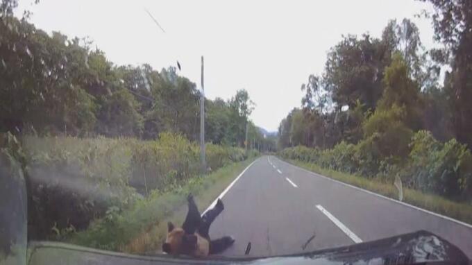日本北海道一名女駕駛開車撞到熊,行車紀錄器也拍下碰撞瞬間。