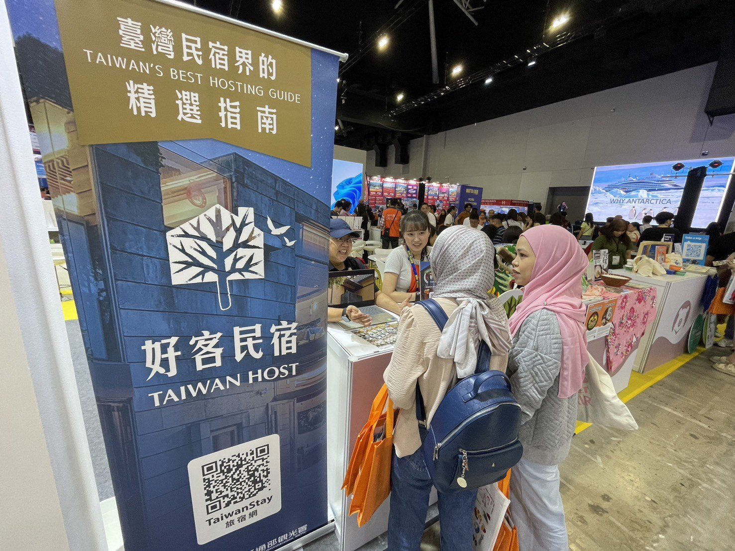 這次台灣館特別設計「好客民宿」形象牆吸引目光,攤位上播放榮獲國際大獎的好客民宿宣傳影片,以及多位民宿主人親自介紹臺灣豐富多元的文化特色及特殊體驗,現場與馬來西亞民眾熱情互動,開展第一天即有多組預定前往台灣旅遊的馬國旅客到攤位洽詢台灣的住宿資訊,並推廣台灣旅宿網,更旅客能安心選放心暢遊台灣。
