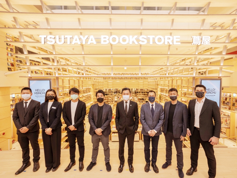 ▲左起:竹市府產發處長許智堡、大魯閣蔦屋新竹湳雅店長邱鳳珍、台灣蔦屋公司經理大塚一馬、台灣蔦屋公司總經理橋本龍之介、林智堅市長、大魯閣湳雅廣場總經理徐永昌、大魯閣湳雅廣場總顧問許俊麒、大魯閣湳雅廣場店長許耀懋。