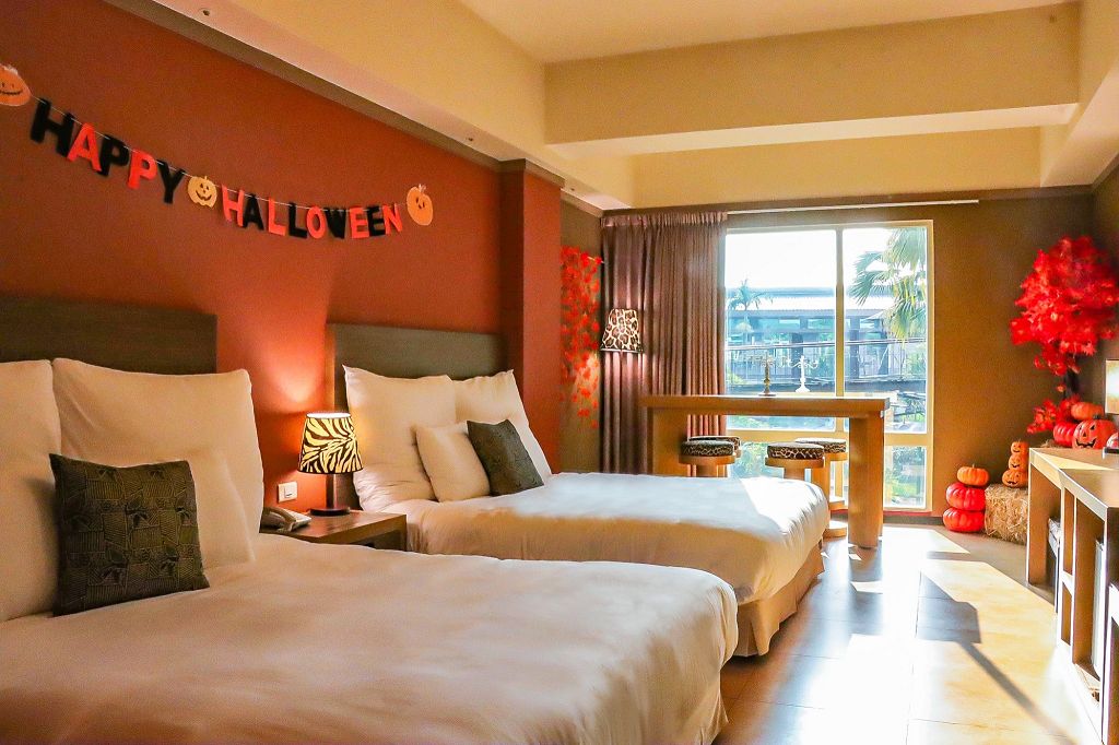 萬聖節除了親子專屬放電專案,還有「鬼娃 Renee 夢遊仙境」墓碑鎮雙人漫遊專案,只要於週間入住即享平日超值優惠價$7,800+10%。專案含雙人份早餐、六福村兩日入園手環、鬼娃Renee限定商品;旺假日入住再贈【惡靈餐廳-顫膽魂飛套餐】2客,用餐兼享受張力十足的惡靈表演。六福村惡靈餐廳九月限定僅每周六日營業,座位非常稀少;快手刀訂房體驗全台最大萬聖慶典吧 !