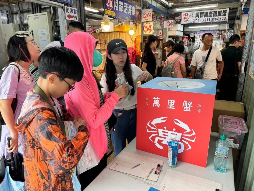 【民眾新聞葉柏成新北報導】新北市龜吼漁夫市集中繼市場為迎接萬里蟹產季到來,即日起至10月6日每週六日推出漁市抽獎活動,單筆消費滿千不僅可以獲得抽獎資格,還可享野柳地質公園相關優惠。