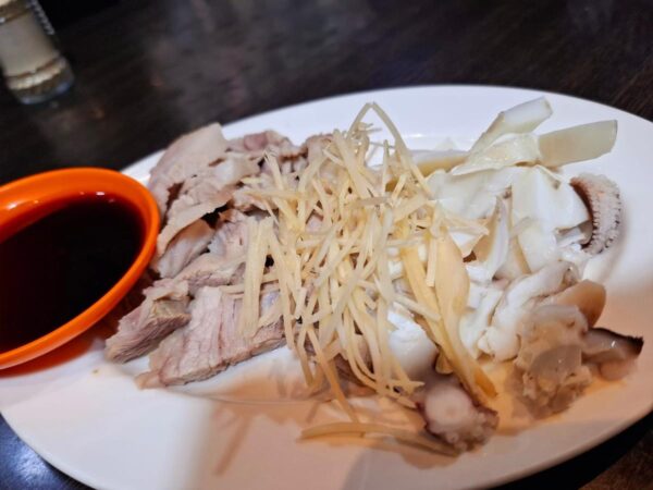 雞肉更是必點,外皮油潤光亮,內裡肉凍晶瑩剔透,皮滑肉嫩,入口即化,甚至連醬油都顯得多餘。微鹹的滋味正好凸顯雞肉本身的甜香,這樣的雞肉,讓我無論何時都想來上一份。