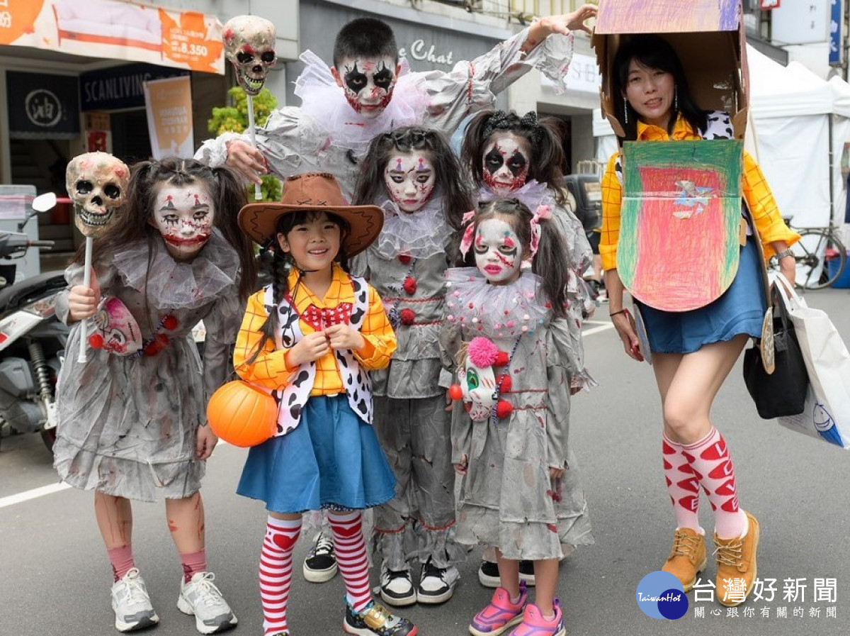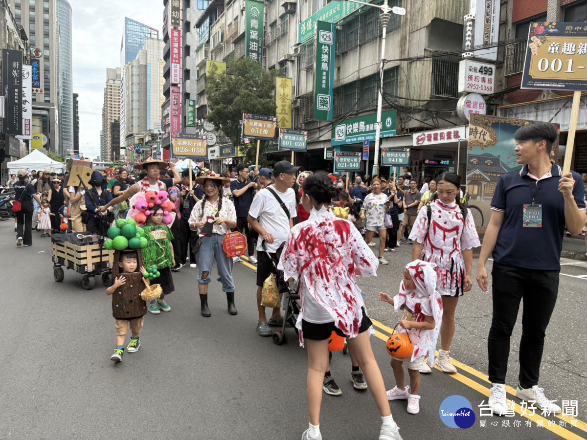 經發局指出,今年變裝比賽分為變裝達人組及童趣親子組,皆不限主題,讓參賽者自由發揮創意,現場聚集超過100組變裝參賽者同場較勁,展示各種厲害、絢麗以及搞怪的變裝秀。