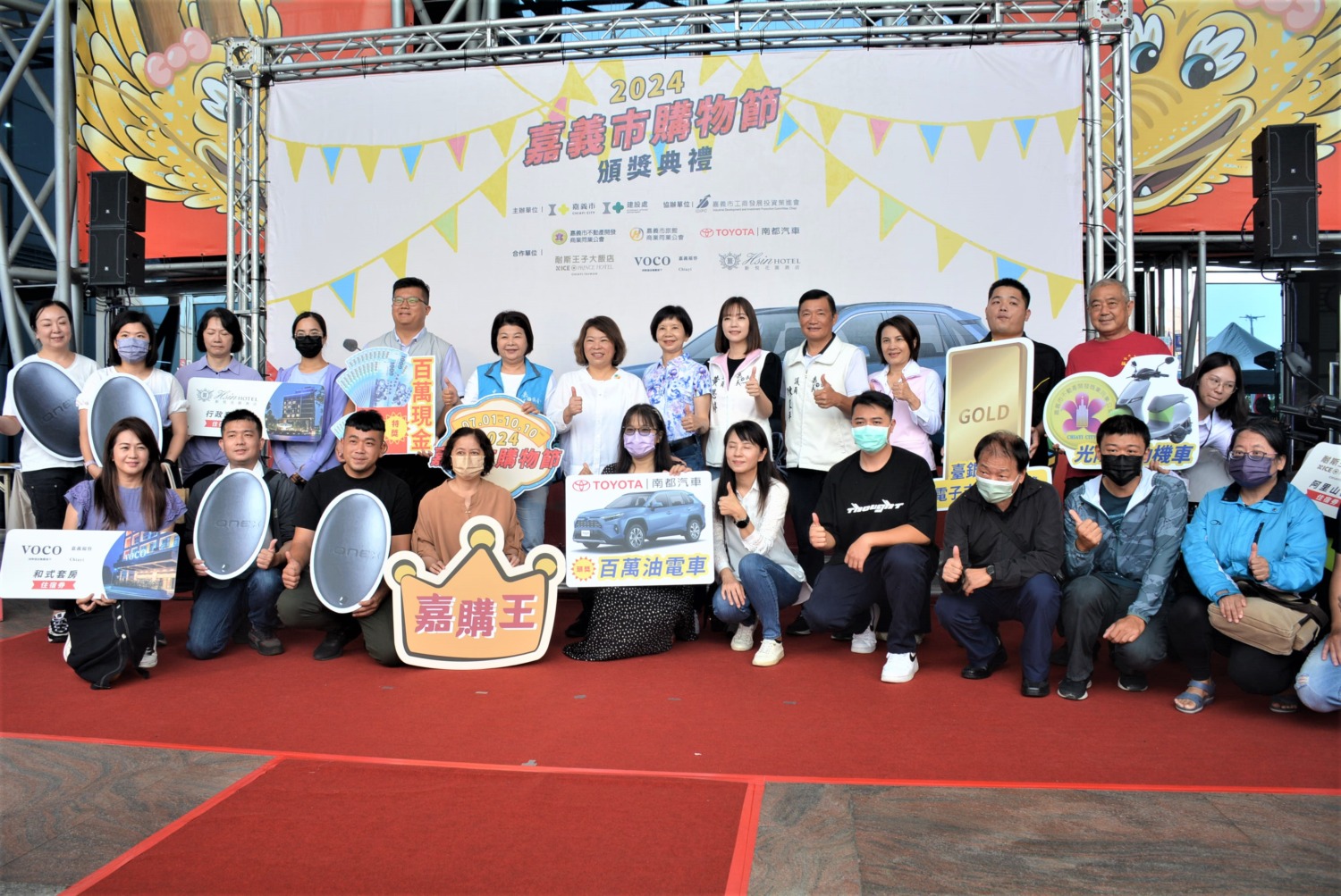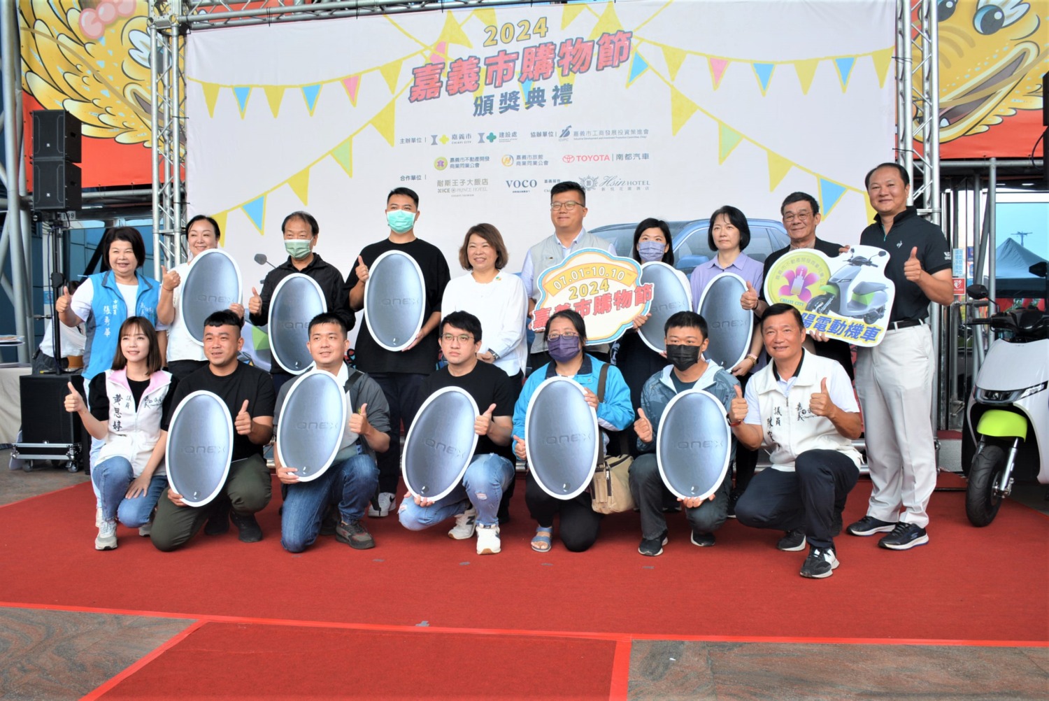 嘉義市政府建設處長田長沛表示,今年不僅發票登錄總額創新高,購物節連續3年開放民眾使用載具系統綁定,完成後就可以直接匯入嘉義市的消費記錄並自動產生抽獎序號,讓抽獎變得更方便,帶動消費者一起進入減紙減碳的數位化生活。今年活動第一大獎百萬油電休旅車乙名、特獎一百萬現金乙名與貳獎歐洲雙人來回機票乙名、參獎光陽電動機車10名、肆獎飯店住宿券3名以及電子支付專屬獎頭獎臺銀黃金乙名、嘉購王1名等得主,皆於今日到嘉義市政府頒獎典禮領獎。