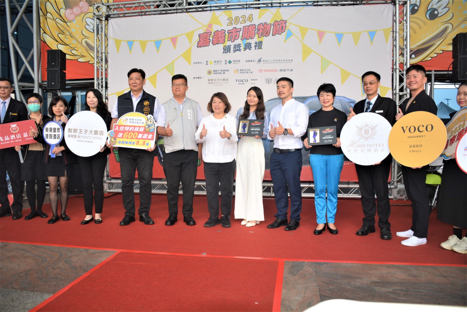 嘉義市長黃敏惠指出,今年購物節發票登錄總金額又創下歷史新高,打破歷年紀錄衝破8.3億;雲端發票登錄總筆數也高達60萬7,349筆,比去年成長4成,感謝「嘉義市不動產商業同業公會」連續4年支持嘉義市購物節並贊助電動機車,還有「嘉義市旅館商業同業公會」連續5年支持「住宿送600嘉遊金」活動,今年共有23家特約旅宿、478家特約店家共同響應,其中很感謝「耐斯王子大飯店」、「嘉義福容voco酒店」、「新悦花園酒店」贊助飯店頂級房型住宿券,鼓勵民眾來嘉旅行、刺激消費!感謝所有在地業者們全力投入資源與心力支持購物節,大家攜手合作,一同振興經濟,讓嘉義市更好。