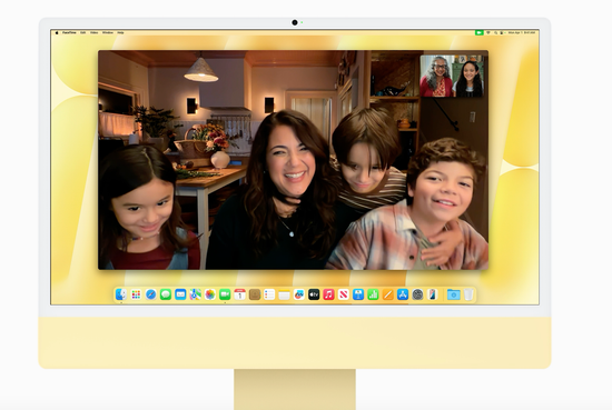 新款iMac擁有全新12MP Center Stage相機支援「桌上視角」功能,在視訊通話的過程中,其人物居中功能可以讓每一位參與者都完美處於畫面中央。