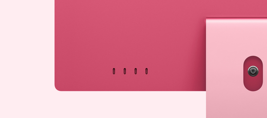 新款iMac的四個USB-C埠皆支援Thunderbolt 4,除了帶來超快的傳輸速度,也方便使用者連接更多配件,包括外接儲存裝置、充電座,以及最多兩台6K外接顯示器。