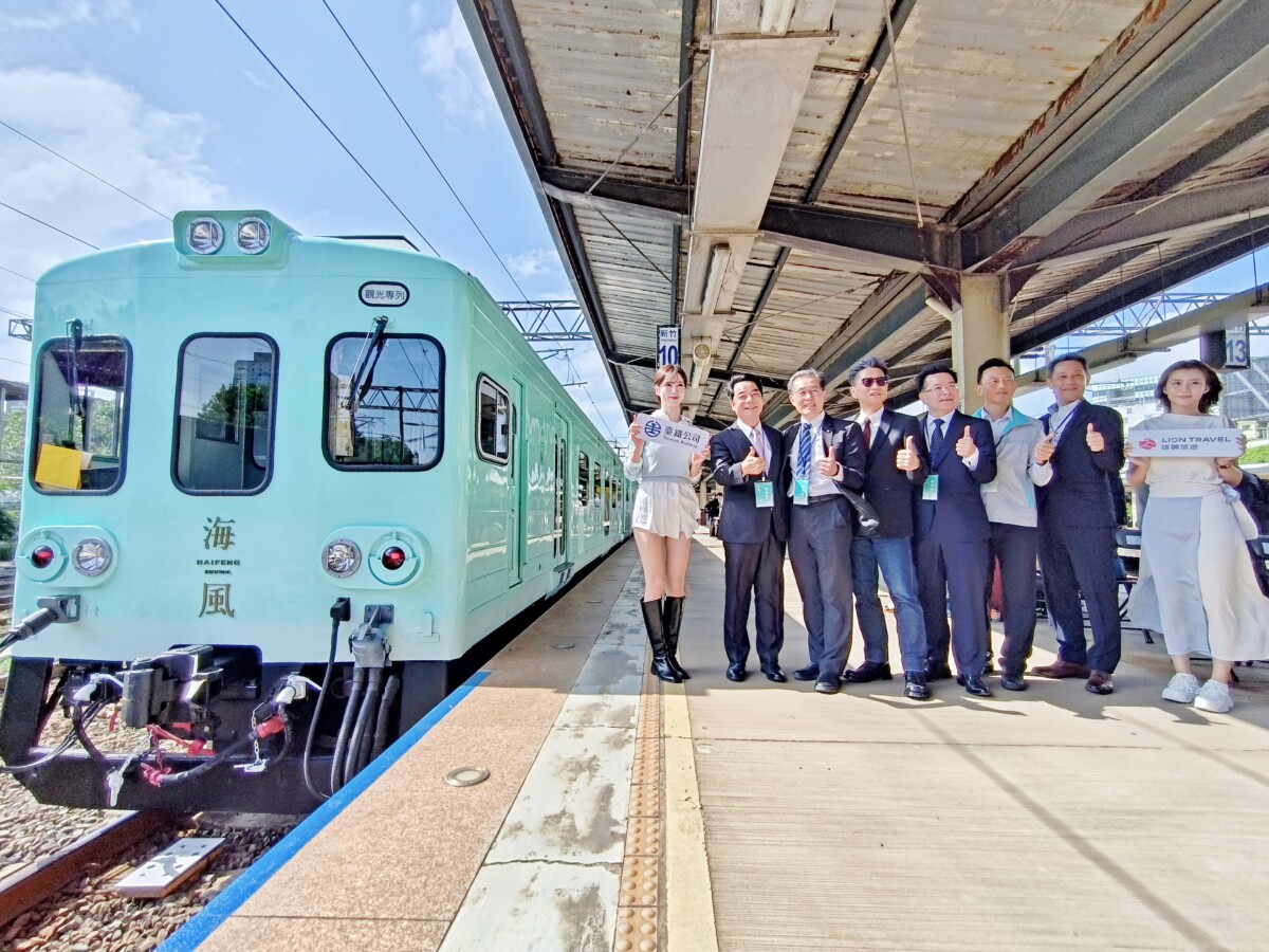 臺鐵公司與雄獅旅行社於今日(11/5)在新竹車站第3月台舉辦海風號見面會,交通部伍勝園次長、近畿日本鐵道株式會社菅浦隆弘董事(取締役)、臺鐵公司馮輝昇總經理、雄獅集團黃信川董事總經理、苗栗縣文化觀光局林彥甫局長、新竹市城市行銷處呂清松副處長、鐵道觀光協會蔡明玲副秘書長等重要嘉賓到場共襄盛舉。