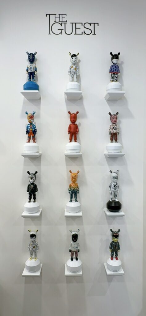 除此,店上亦展售多款「Heritage傳承」及「New Concept新理念」等系列作品,其中,「New Concept新理念」中的「The Guest」、「摺紙藝術」、「非洲面具」系列是品牌近年來創作的特色亮點。「The Guest」公仔系列,是2012年時由西班牙設計師Jaime Hayon為「LLADRÓ雅緻瓷偶」所設計,之後也陸續與各國名人合作推出作品,像是與美國設計師Tim Biskup、日本5人設計團體Devilrobots、美國加州藝術家Gary Baseman及英國時尚設計師Paul Smith等都在合作之列,而在2019年、2020年與2023年,更與西班牙藝術家Ricardo Cavolo、韓國療癒系插畫家Henn Kim與法國設計師Camille Walala等聯手,讓瓷偶的公仔藝術有各種創意的形式呈現。