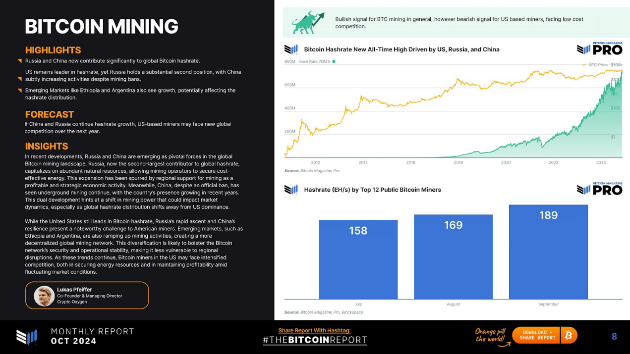 - 挖礦動態:俄羅斯和中國正擴大其挖礦影響力,而美國仍保持最大的算力份額。
