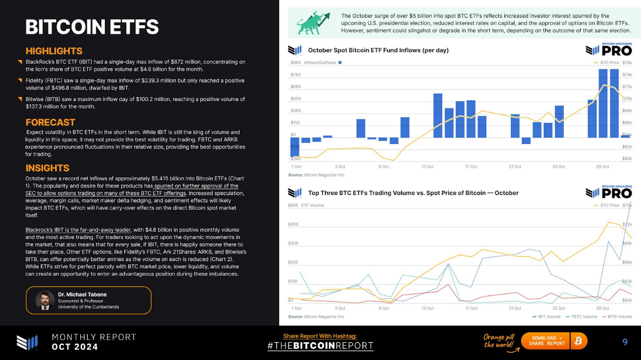 Bitcoin Magazine Pro 發文對 10 月比特幣進行了回顧,並討論一些關鍵話題。包括比特幣的交易所餘額下降、 ETF 資金流入超過 50 億美元,以及可能在未來一個季度重新定義比特幣價值的樂觀預測。以下為報告詳情。