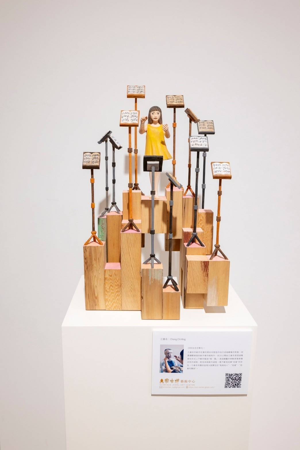 江基名,寶吉祥藝術中心長期合作的台灣傑出木雕藝術家,以精湛的雕刻技術和自然材質為核心,結合強烈的線條與色彩,探索城市情感與空間衝突,讓觀者感受生命形態的溫暖與哲思。