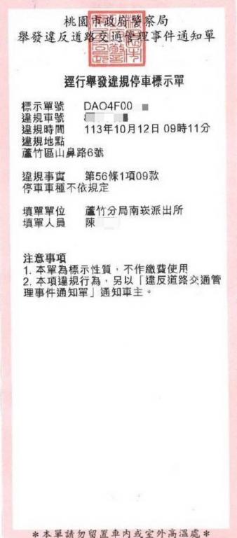 圖說: 桃園市政府警察局亦自12月1日起推動桃園市交通違規逕舉通知單全面電子化。(圖/蘆竹警分局提供)