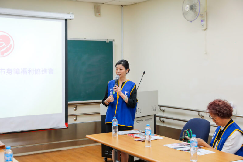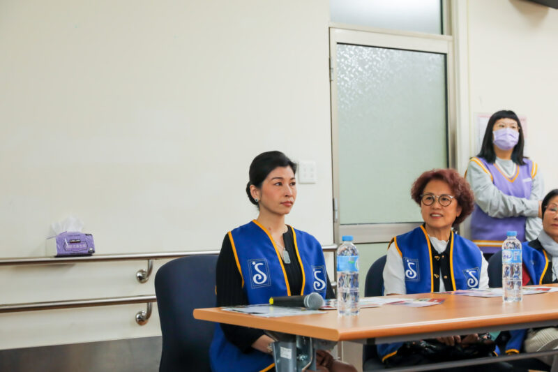 台中市身障福利協進會理事長謝秋蘋表示:今天很感謝蔡理事長今日率領這麼多美麗的天使來捐贈。平時很少善心人士關注到身障福利協進會,很少有人幫助我們,我們真的很需要被幫助。今天很感動,感謝蔡理事長與會姊們的幫忙。