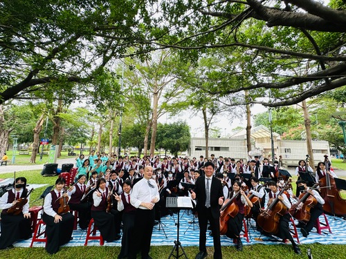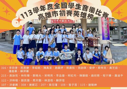 她呼籲全校師生共同期待明年小龍年三月的全國賽,音樂班三大樂團即將代表高雄市,為高雄市和鳳西國中再添榮耀!