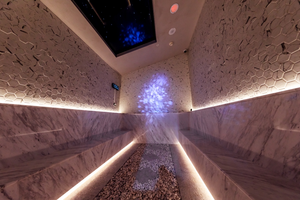 最後則是充滿浪漫星空燈光的「映雪房」,不僅帶來視覺上享受,亦彷若置身夢幻冬日,透過高低溫差的刺激,促進毛細孔收縮,使躁動的心靈回歸平靜。