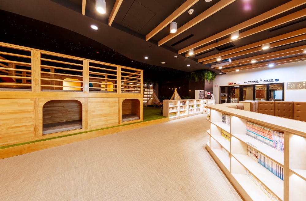星空棧擺放近2,000冊漫畫書籍,通鋪空間內設有個人艙與滿天空星燈,且附有插座能隨時充電,讓人們在星空的陪伴下沉浸書海,以愉悅心情度過悠閒時光。樂活驛則設有下沉式的沙發,打造愜意閱讀、放鬆冥想的舒適角落。