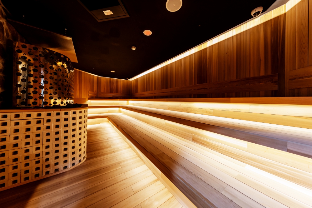 接著是館內溫度最高的「潤竹房」,採用芬蘭浴桑拿設計,將水澆在烤爐的熱石上,散發出的熱氣能有效刺激交感神經,促進血液循環,幫助身體快速排汗,為追求爆汗體驗、消除疲勞的首選。