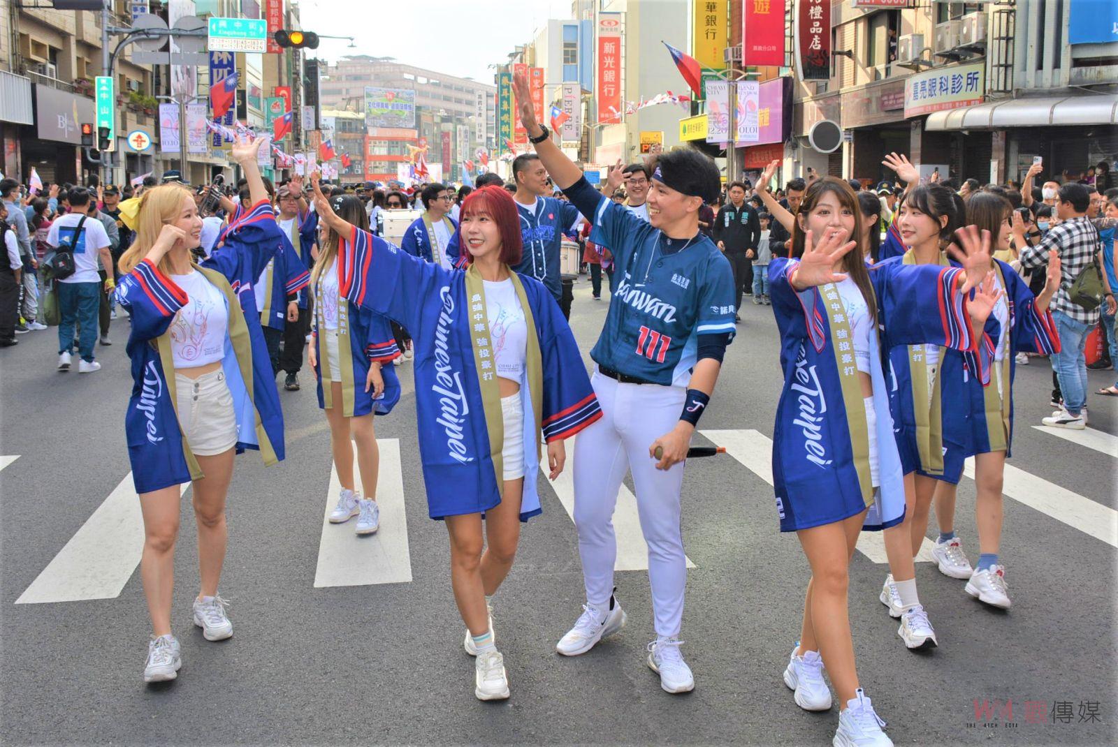 ▲富邦悍將應援團團長與啦啦隊引導於前。