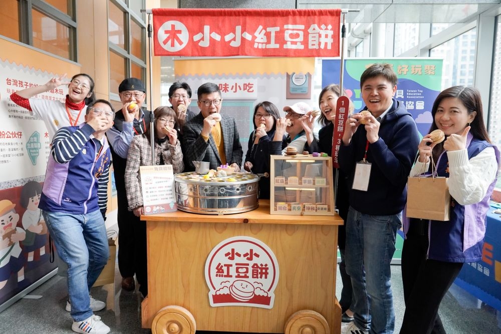 活動攤位中展示玩具的創新多變,廢棄玩具可以作為玩具醫學院課程教材、變身為循環再造的椅子。台灣玩具教育發展協會開發木育玩具,製作出相當擬真的紅豆餅小吃攤,可以讓孩子們當「小小老闆」製作紅豆餅。