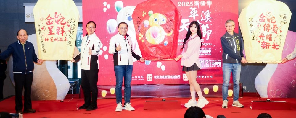 2025新北市平溪天燈節活動記者會今〈7〉日由市長侯友宜與活動代言人李多慧及觀旅局長楊宗珉等人共同揭幕,並說明活動相關訊息,詳情可上新北市觀光旅遊網、新北旅客Facebook粉絲專頁、新北旅客官方IG或「2025新北市平溪天燈節」官方網站查詢。